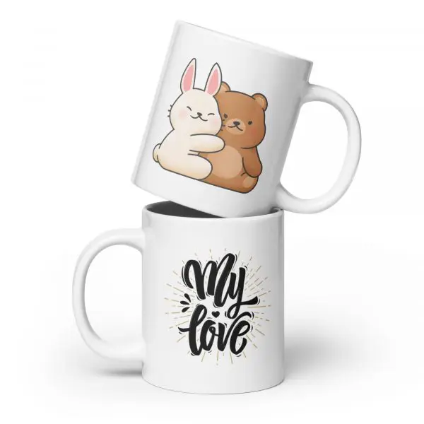 Unsere “My Love” Tasse ist perfekt, um Deine Zuneigung auf charmante Weise zu zeigen. Mit dem niedlichen Motiv eines kuschelnden Häschen und Bärchen und dem liebevollen “My Love” Schriftzug, bringt diese Tasse Wärme und Zärtlichkeit in Deinen Alltag. Ideal für romantische Momente oder als liebevolles Geschenk.