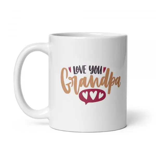 - Design: Illustration eines lächelnden Großvaters auf der einen Seite, “Love You Grandpa” Schriftzug auf der anderen Seite